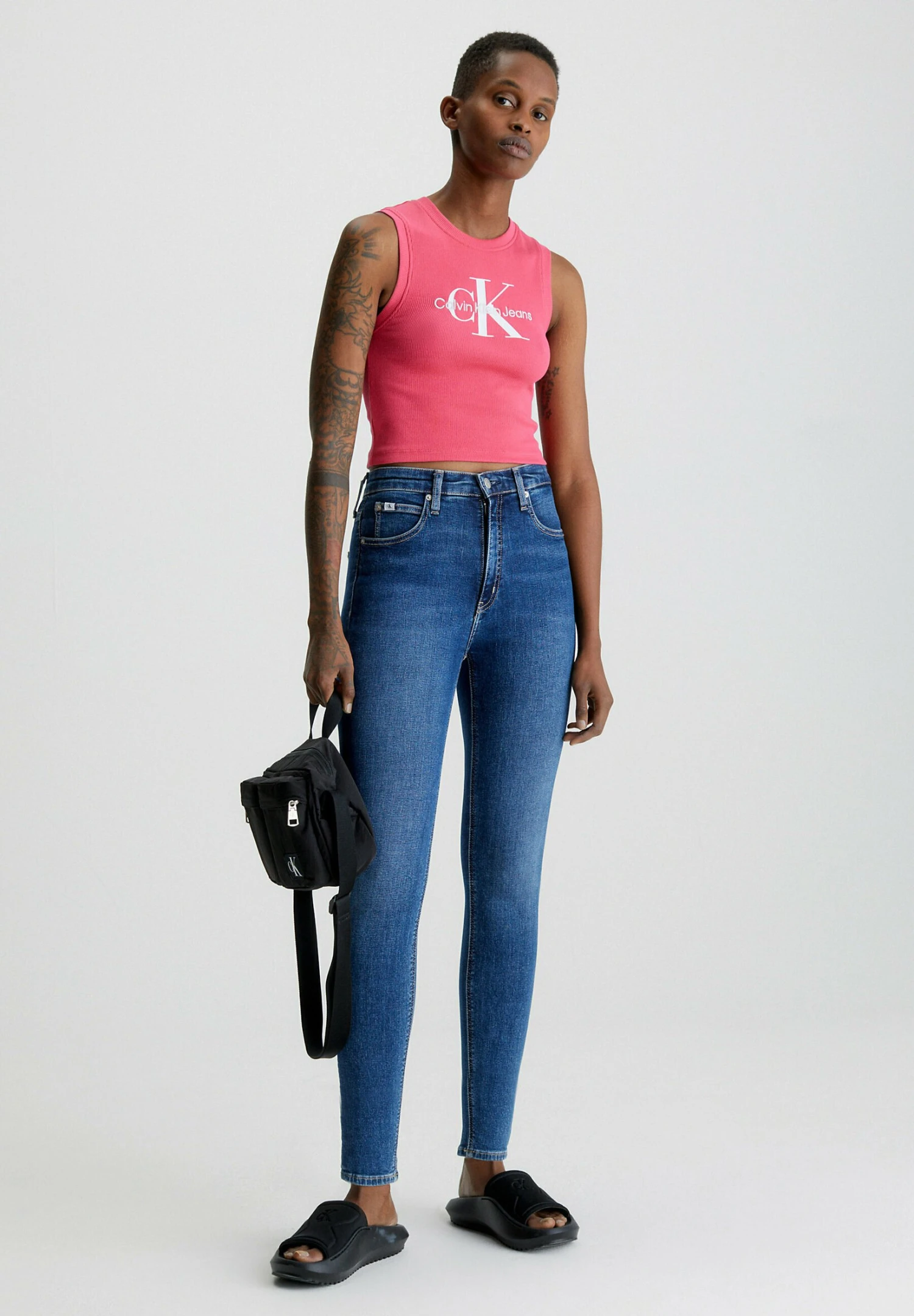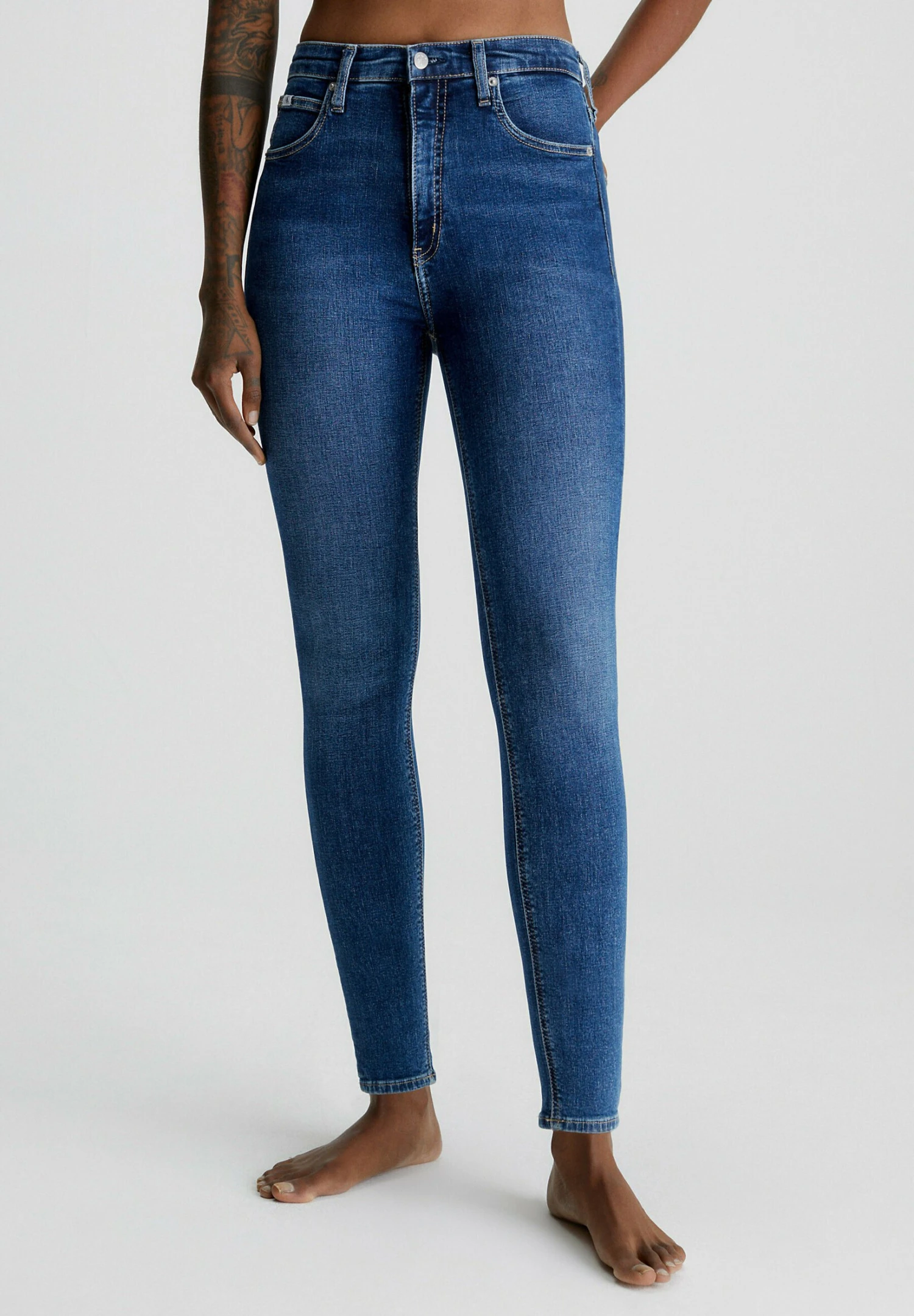 Calvin Klein Jeans HIGH RISE SUPER ANKLE – Jeansy Skinny Fit – Denim Dark