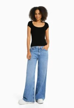 BERSHKA SHORT SLEEVES WITH A ROUND NECK – T-shirt Basic – Black