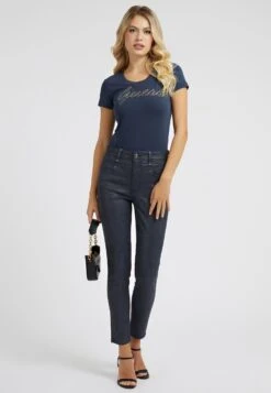 Guess FRONTLOGO STRASSSTEINE – T-shirt Z Nadrukiem – Dunkelblau