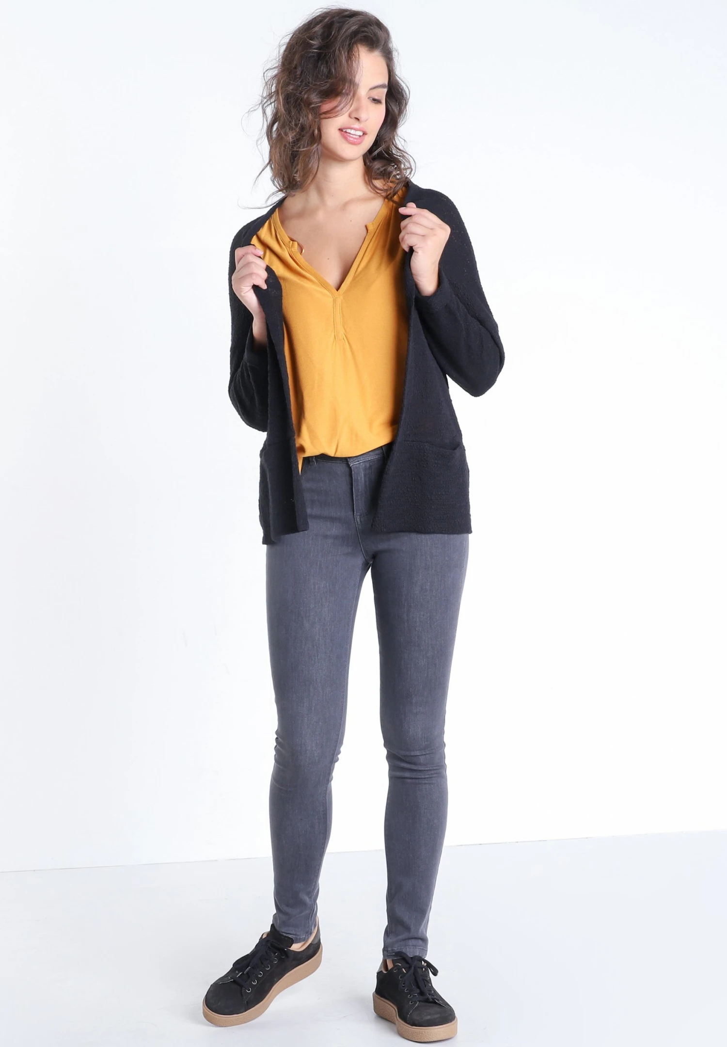 MIT HOHER TAILLE – Jeansy Skinny Fit – Gris Foncé