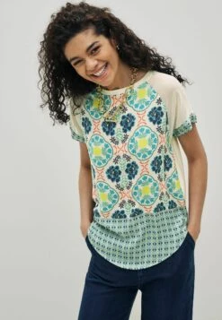 Next SHORT SLEEVE RAGLAN – Bluzka – Ecru Cream Geo