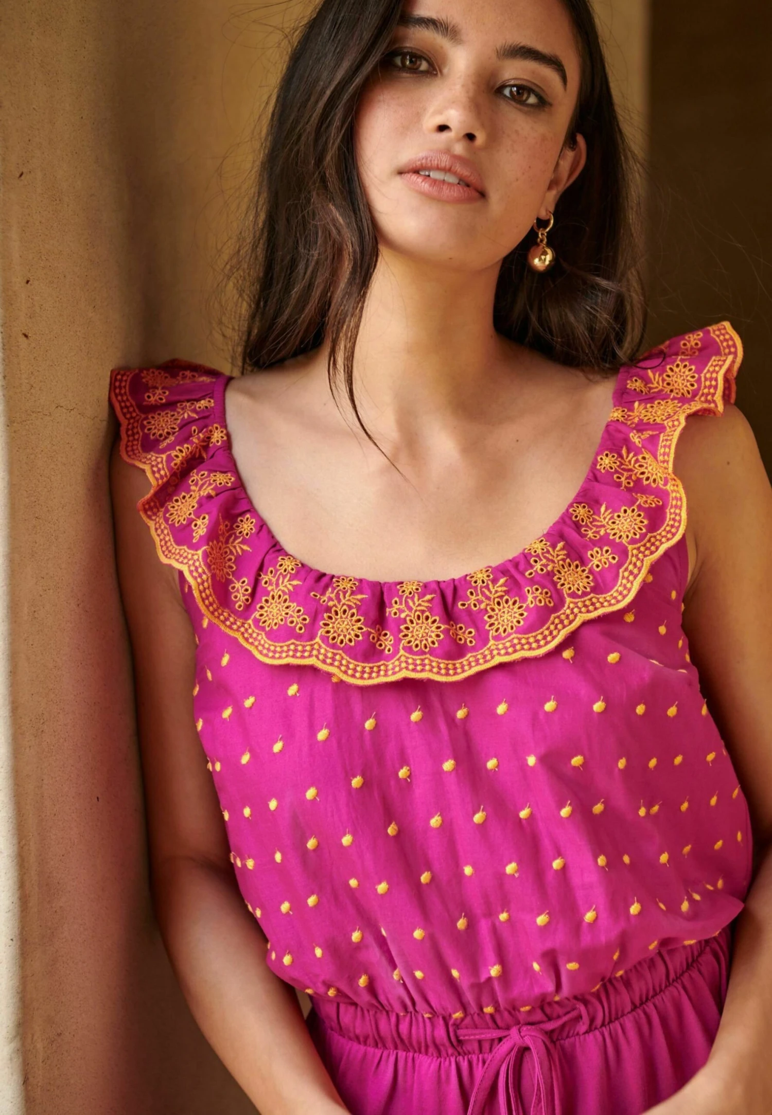Next SLEEVELESS RUFFLE TIE WAIST EMBROIDERED STANDARD – Kombinezon – Pink/orange