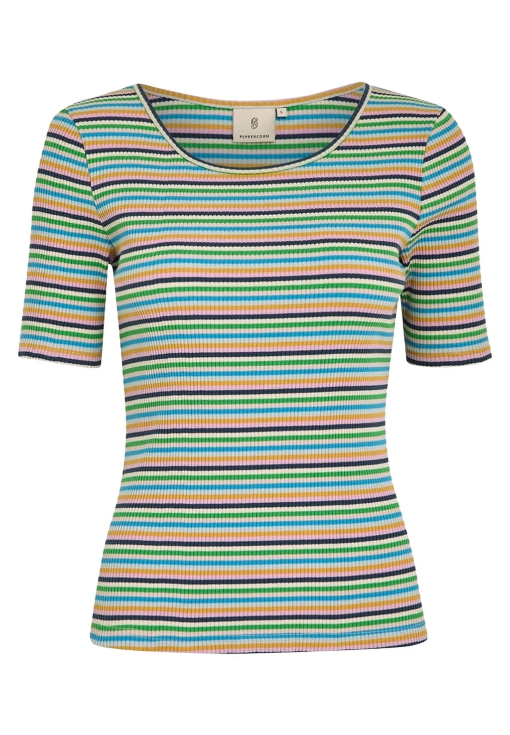 Peppercorn LEONORA – T-shirt Z Nadrukiem – Bright Green Stripe