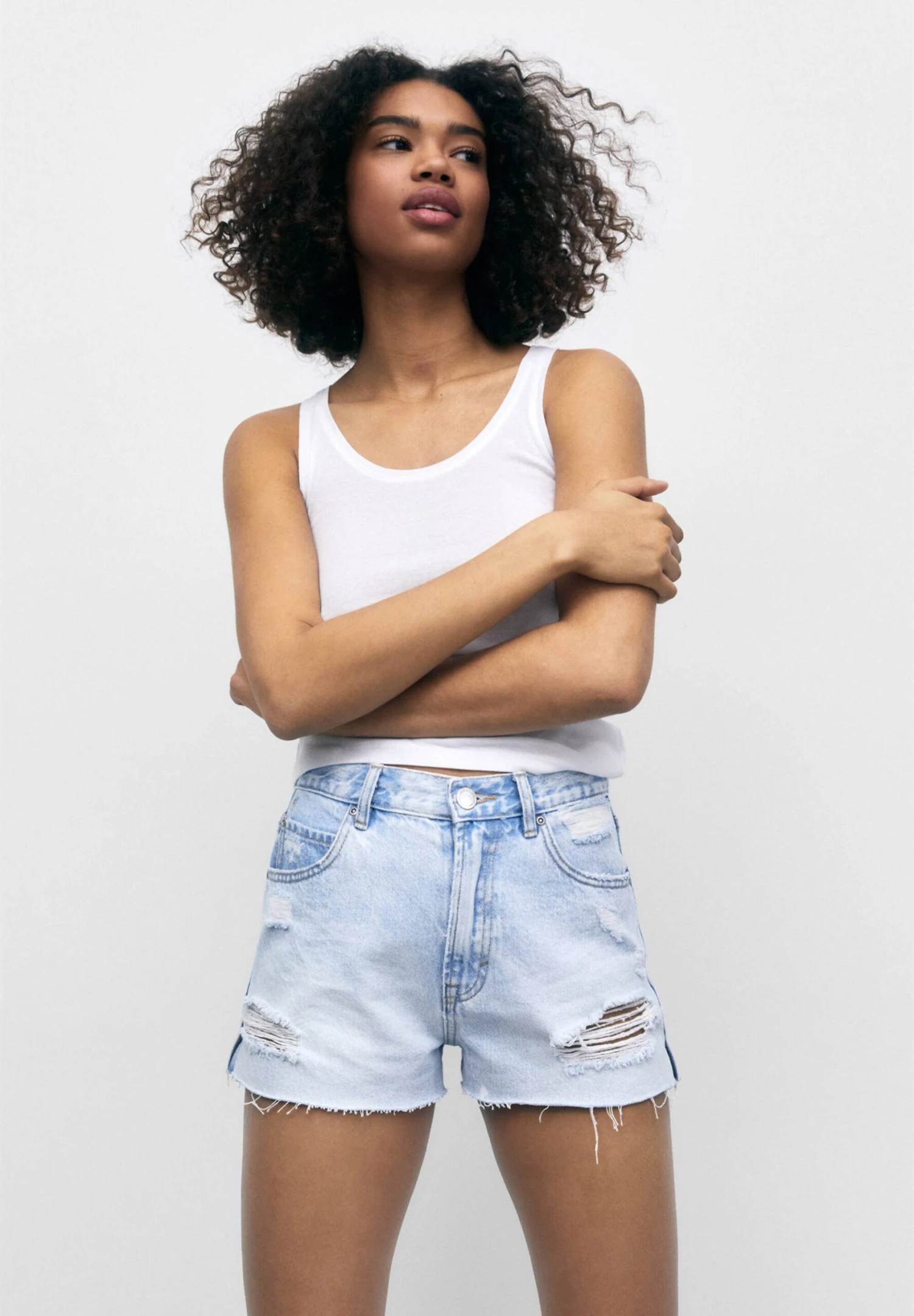 PULL & BEAR MOM-FIT – Szorty Jeansowe – Stone Blue Denim