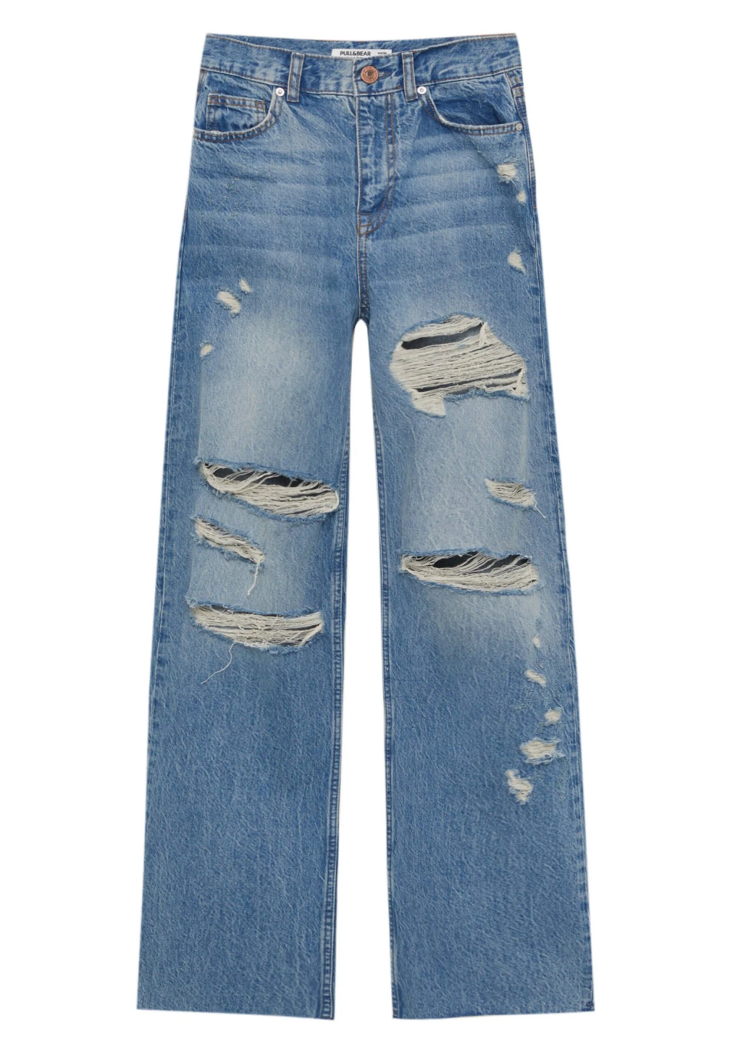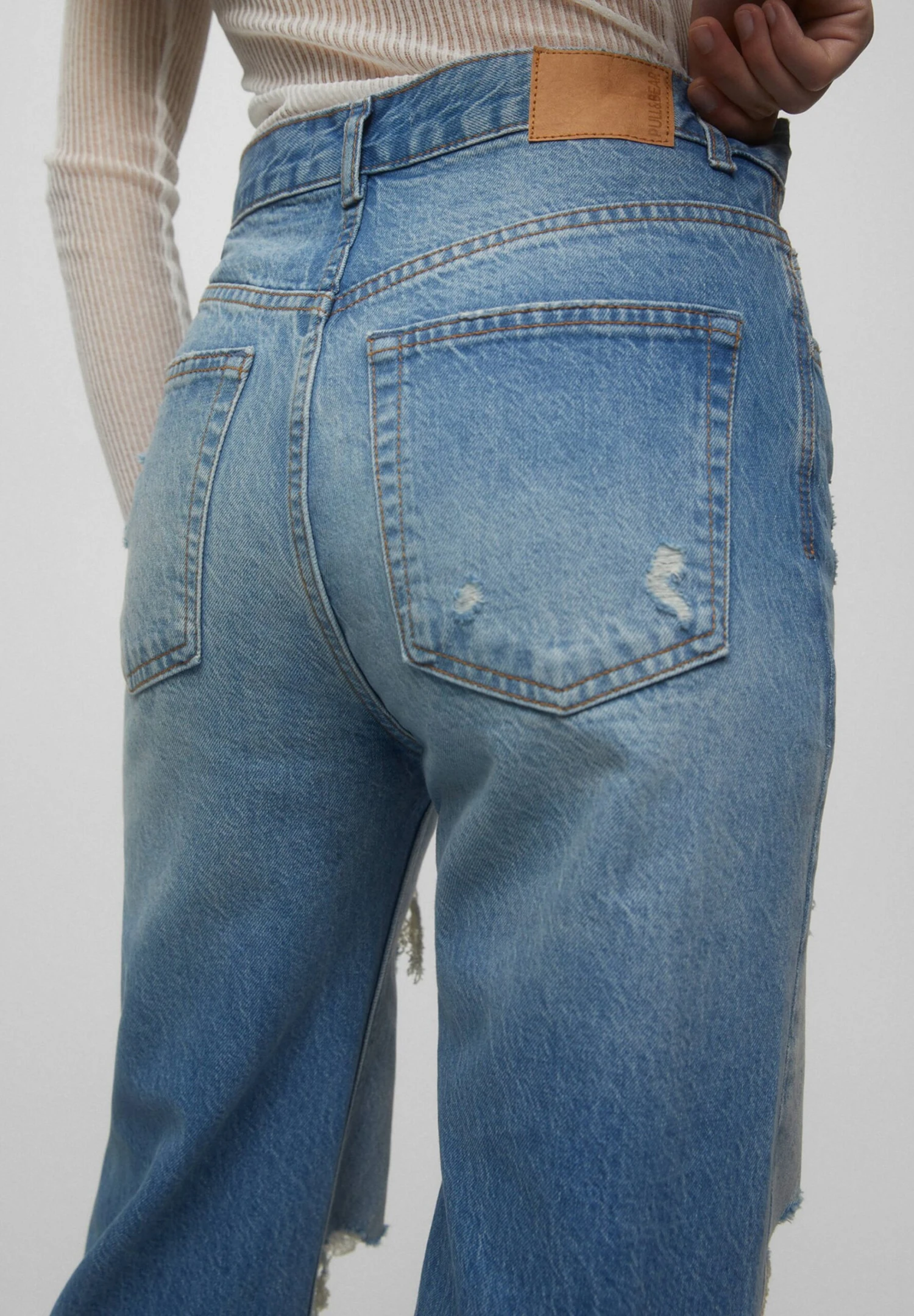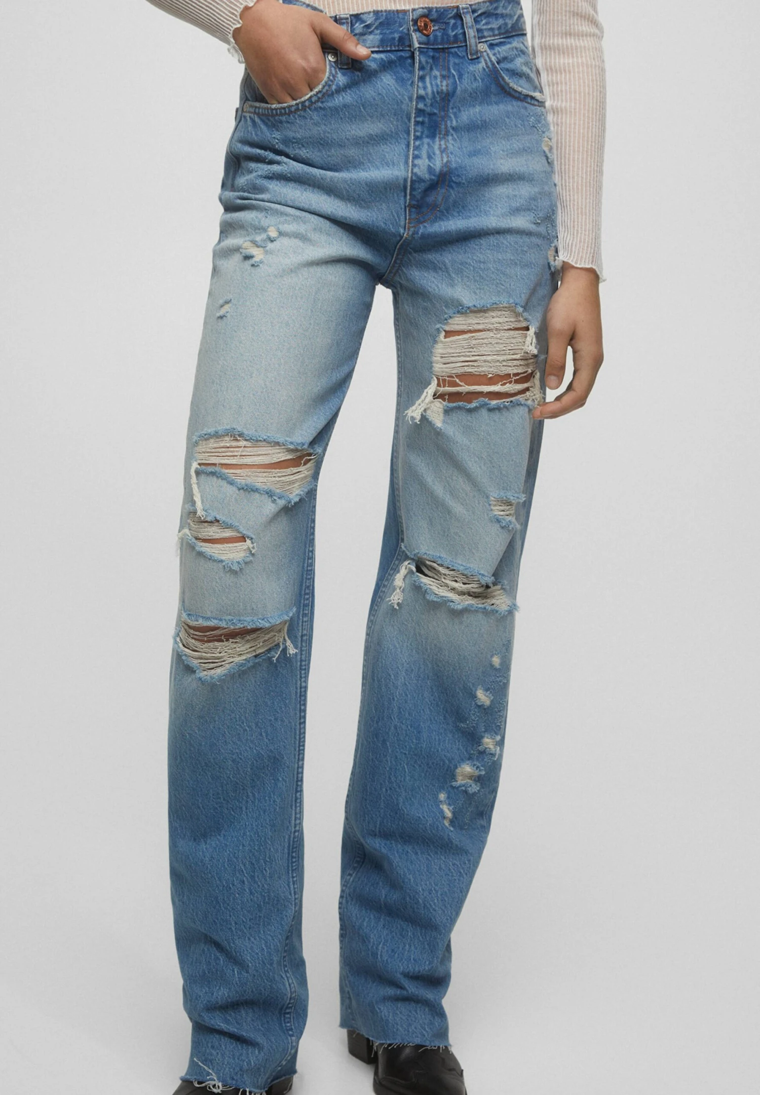 PULL & BEAR RIPPED – Jeansy Straight Leg – Dark Blue