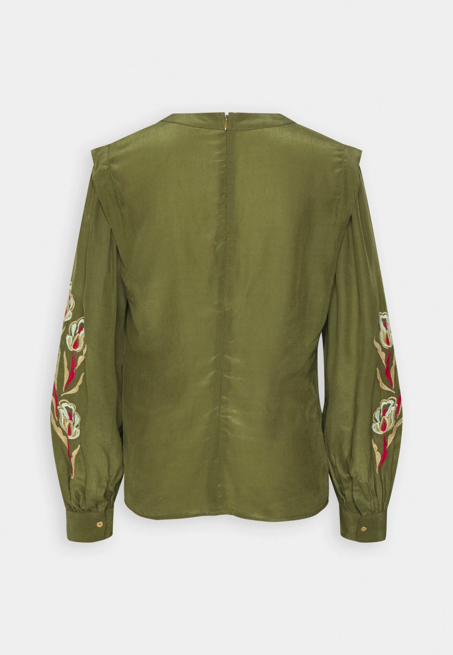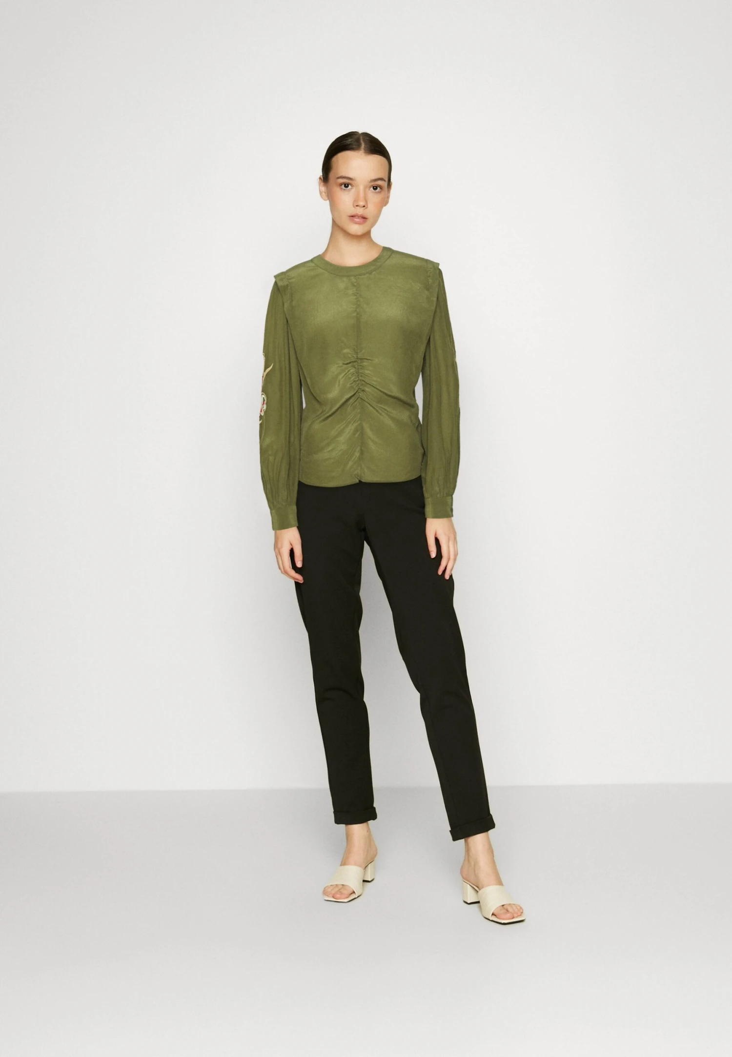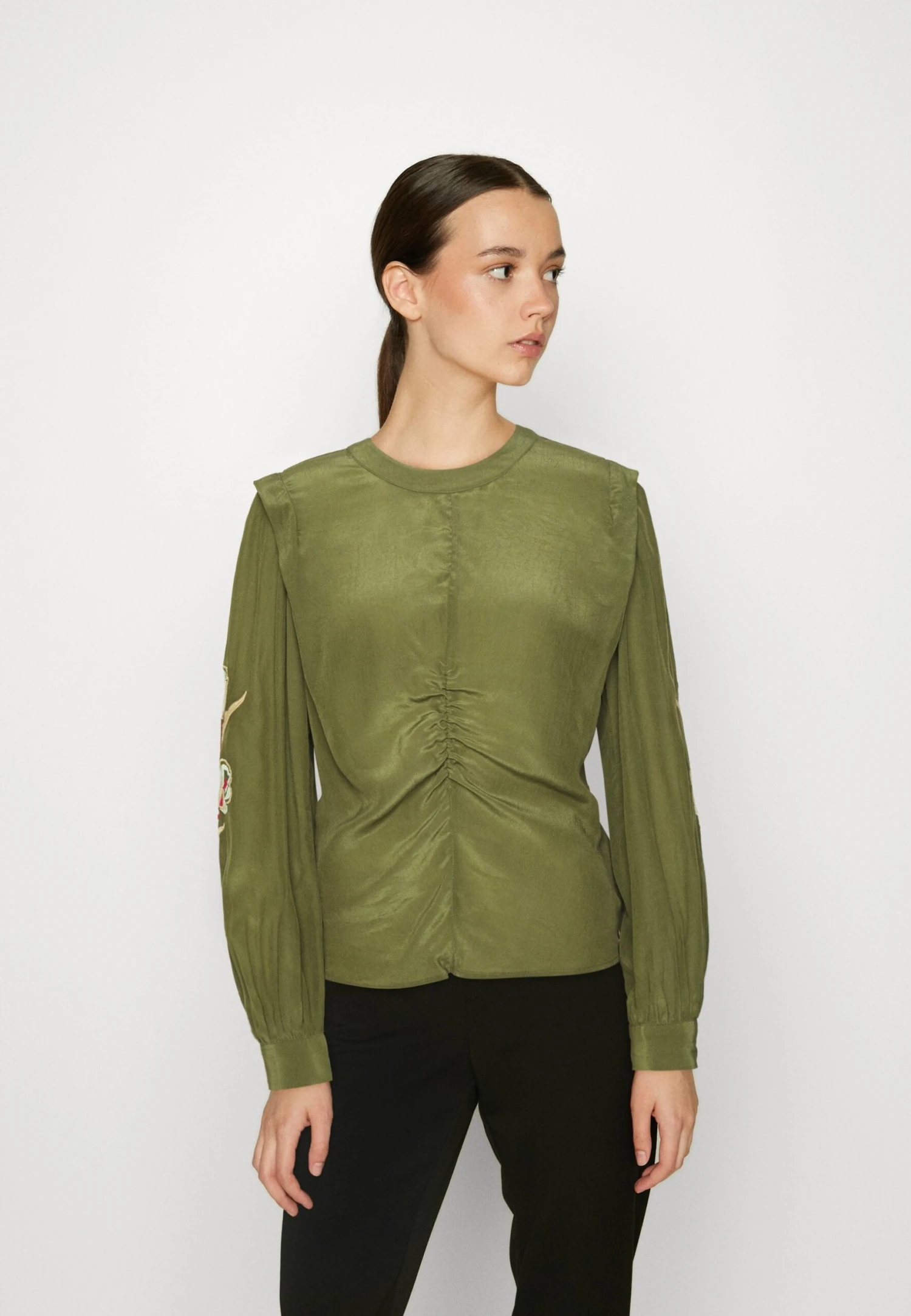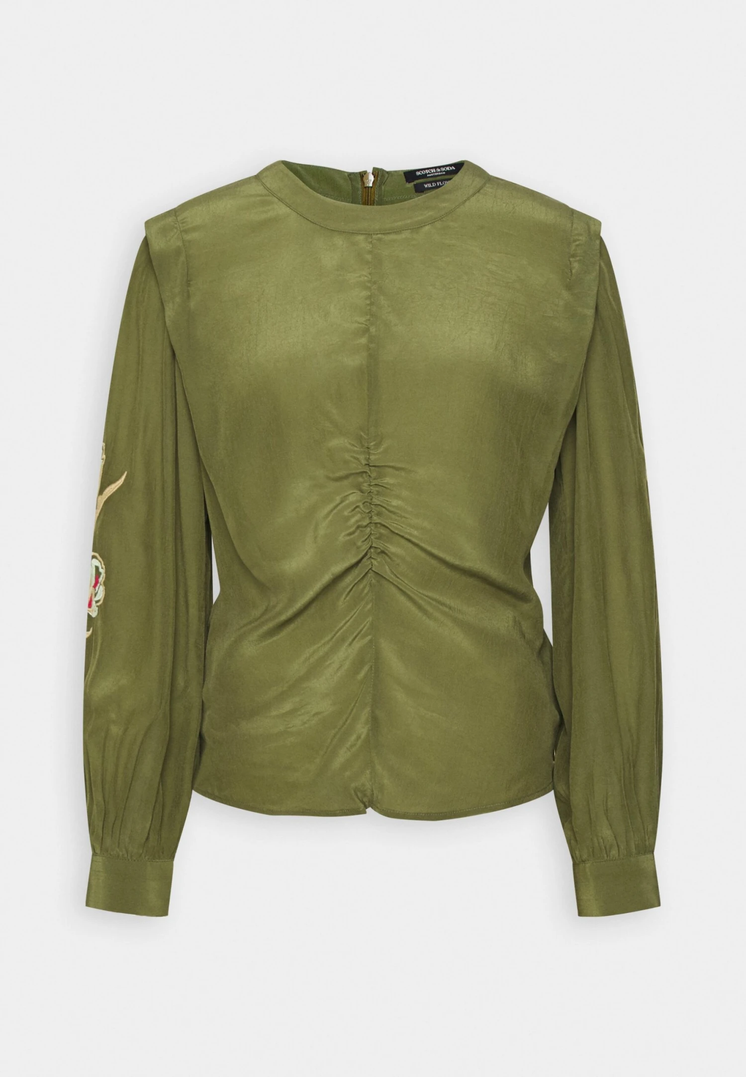 Scotch & Soda RUCHED WAIST BLOUSE WITH EXTENDED SHOULDER – Bluzka Z Długim Rękawem – Army Green