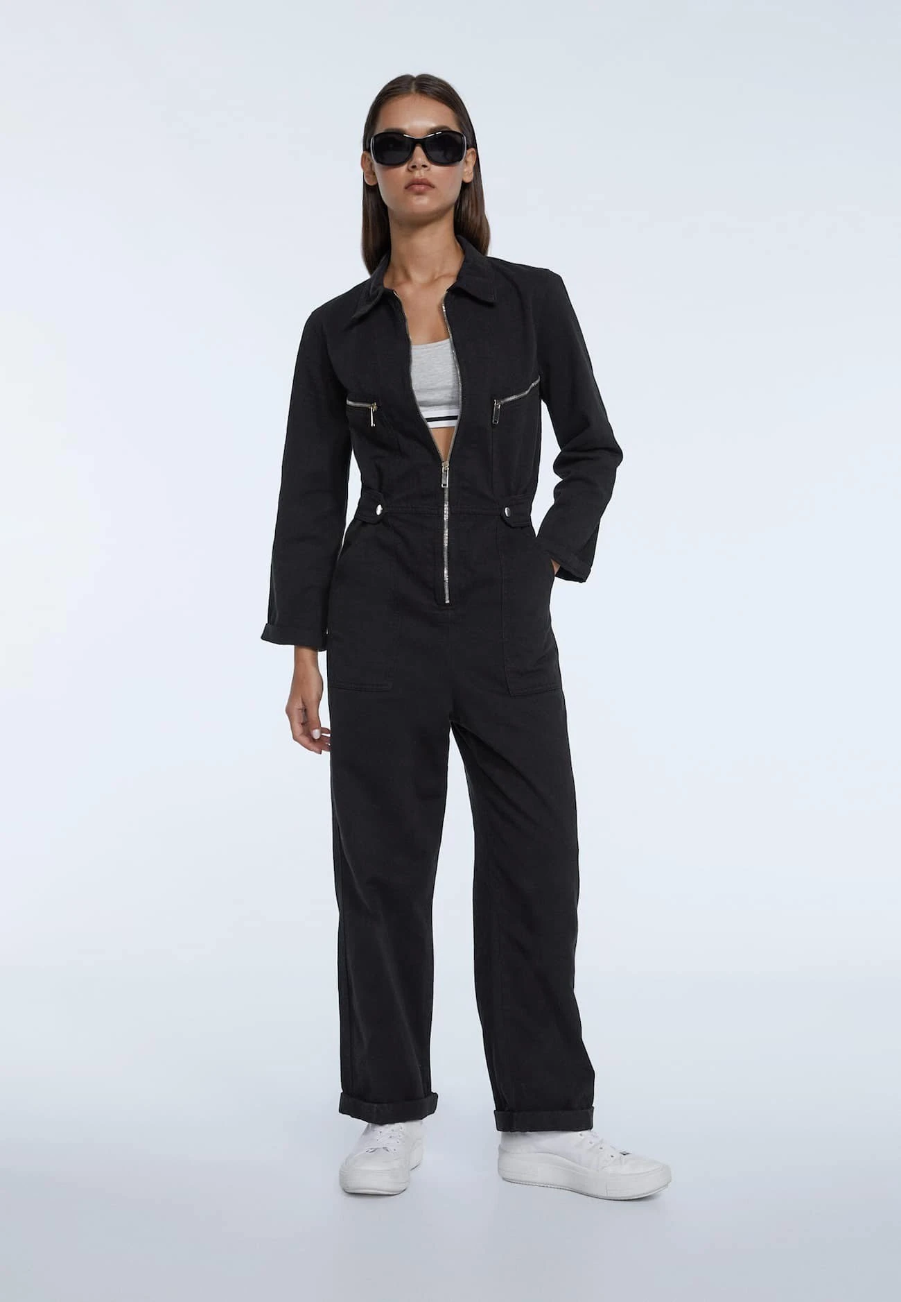 Stradivarius MIT DRUCKKNÖPFEN – Kombinezon – Black