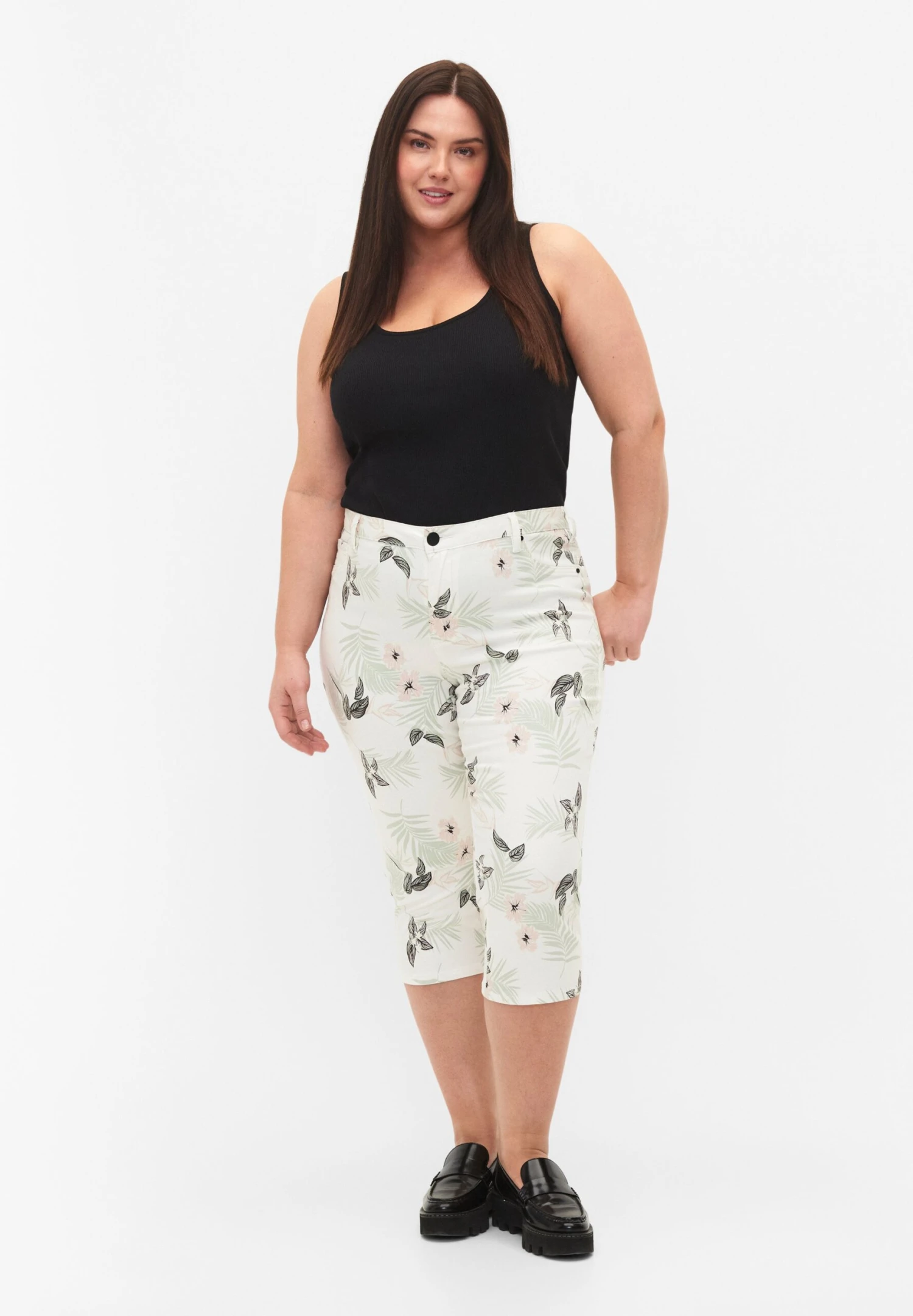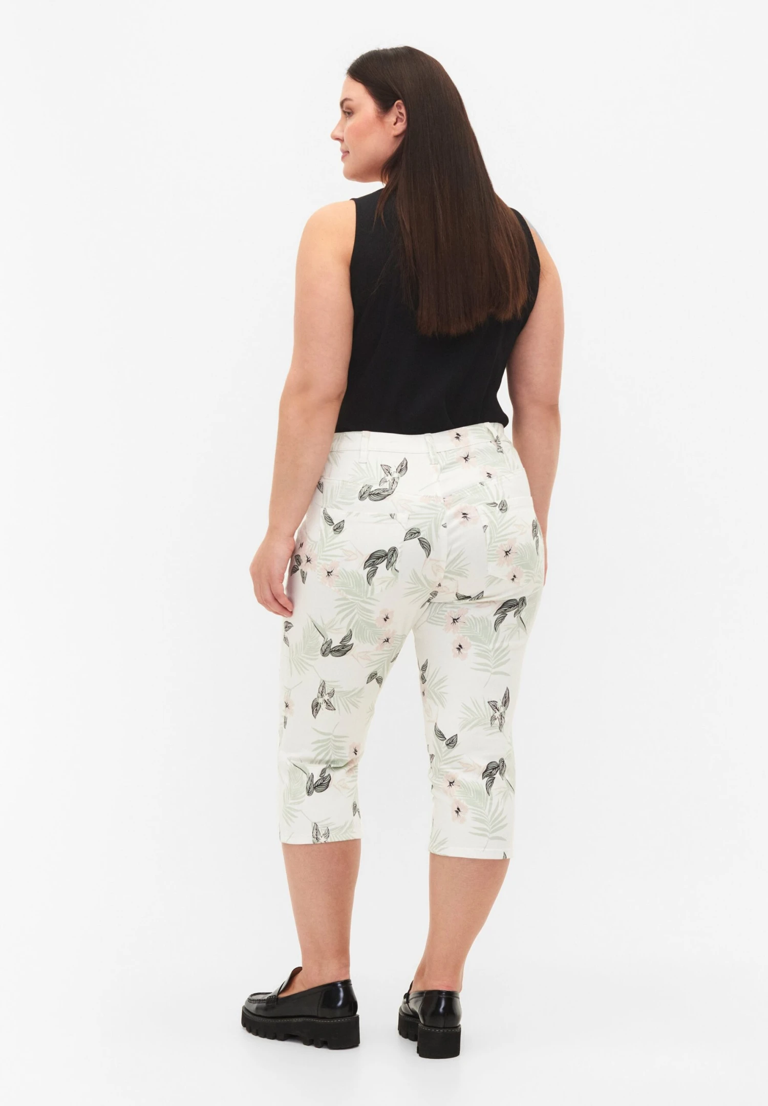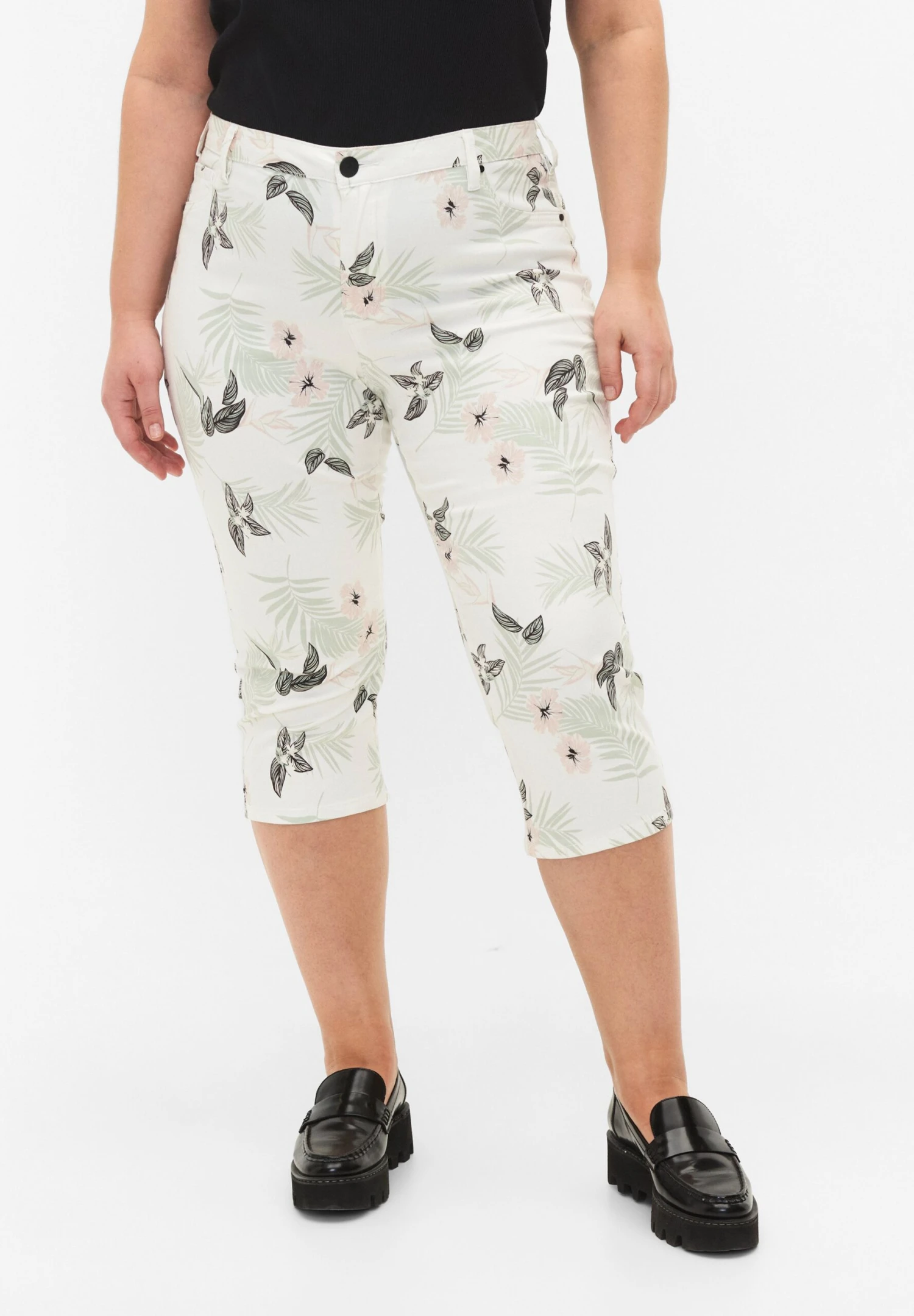 Zizzi CAPRI – Jeansy Slim Fit – White Flower Aop